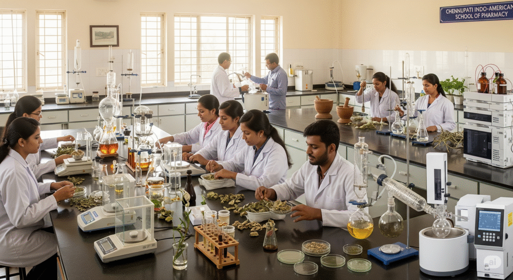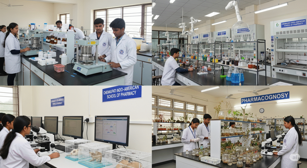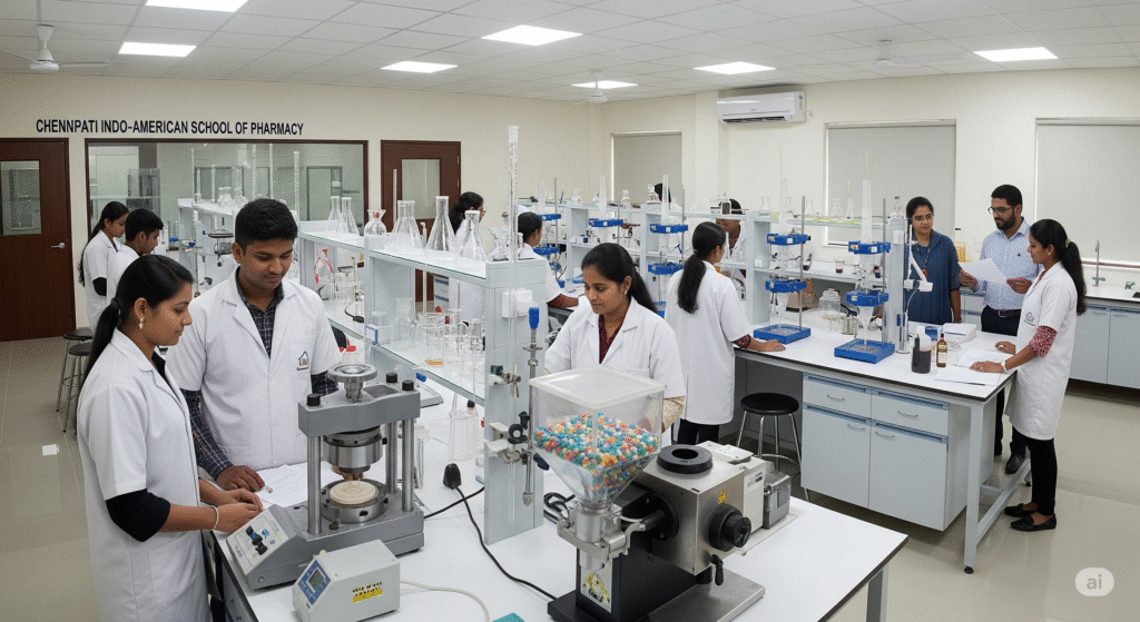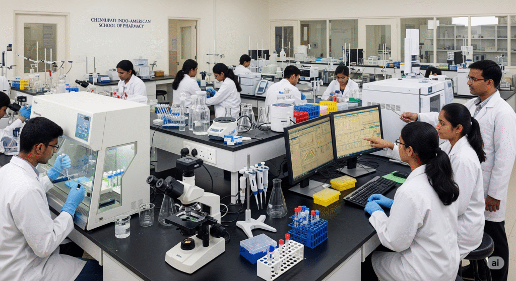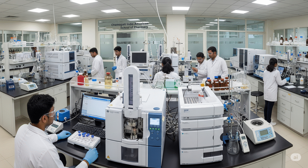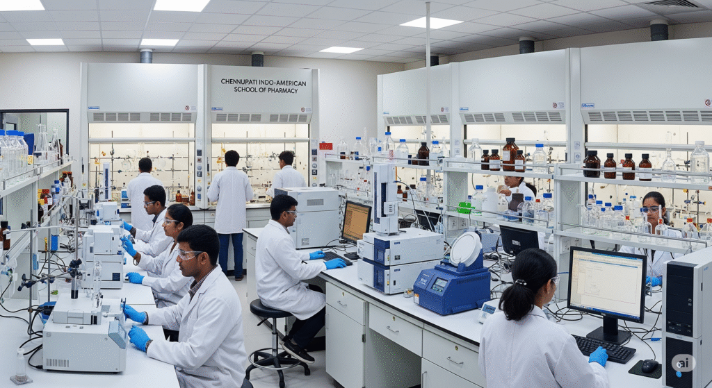 The academic laboratories at Chennupati Indo-American School of Pharmacy (IASP) stand as the cornerstone of experiential learning, blending theory with real-world application. Equipped with advanced instruments and modern infrastructure, these laboratories enable students to gain hands-on exposure across various branches of pharmaceutical sciences, including pharmaceutics, pharmaceutical chemistry, pharmacology, and biotechnology. Under the expert guidance of experienced faculty, students engage in experiments that strengthen analytical thinking, precision, and research ethics. This immersive environment nurtures scientific curiosity, discipline, and innovation, ensuring that learners acquire the technical expertise and confidence necessary for excelling in higher education and professional pharmaceutical careers.