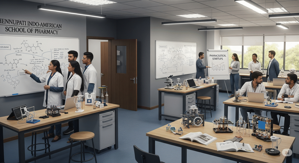 At Chennupati Indo American College of Pharmacy, our Incubation Center serves as a vibrant hub for innovation and entrepreneurship in the pharmaceutical sciences. It offers students and researchers the opportunity to transform creative ideas into practical solutions that benefit society. Through strong mentorship, state-of-the-art infrastructure, and collaborations with industry experts, the center helps young innovators develop research-based startups and novel healthcare technologies. Moreover, it encourages teamwork, creativity, and problem-solving skills, allowing participants to gain real-world experience and industry exposure. By bridging the gap between academic research and practical application, the Incubation Center plays a vital role in nurturing future leaders and advancing pharmaceutical innovation.